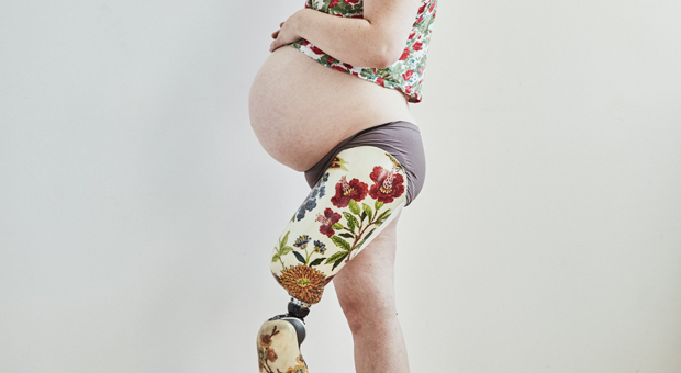 I was scrolling through Twitter when my eyes locked on an image of a pregnant woman. Taken from the side, her belly was the centre of the photo, and her closest leg had a brilliant floral pattern on it that matched her cropped shirt. It was a prosthetic leg. I clicked on the link to find this CBC piece by Canadian folk singer and songwriter Christa Couture: I Couldn’t Find Any Disability Maternity Photos, So I Created My Own.